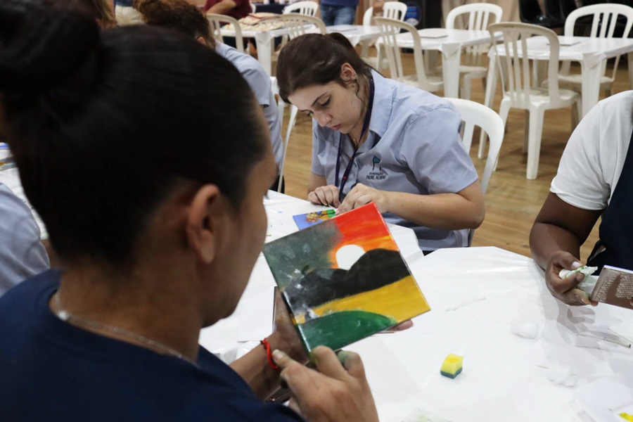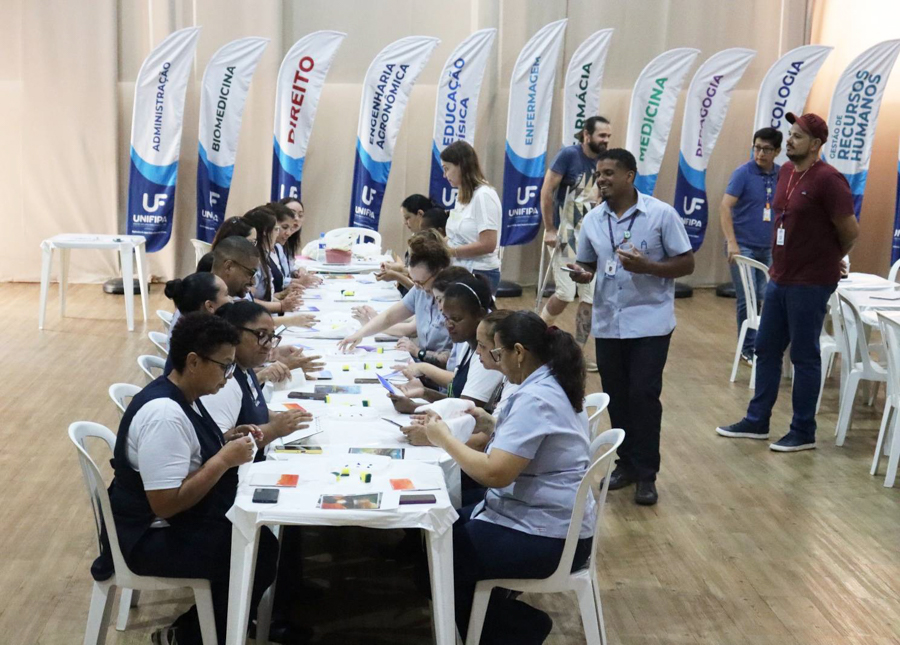 Na terça-feira, 11 de novembro, o Centro Universitário Padre Albino/UNIFIPA, em parceria com o SESC Catanduva, promoveu a oficina “Pintura em Azulejo”, voltada aos colaboradores da Fundação Padre Albino. A atividade foi ministrada pela professora Lara Alicia, com colaboração dos professores Renato Carvalho Andraus e David Carlo, na Sala Saúde e Movimento, no Complexo Esportivo Ivo Dall’Aglio, campus sede da instituição.
