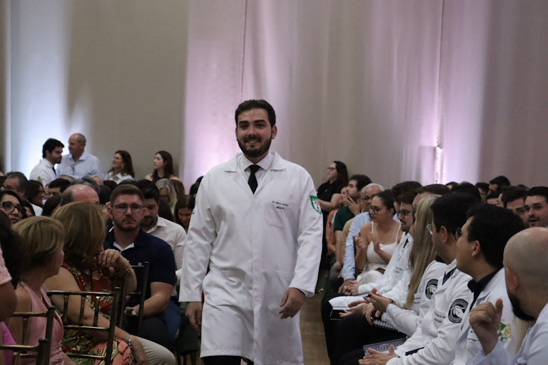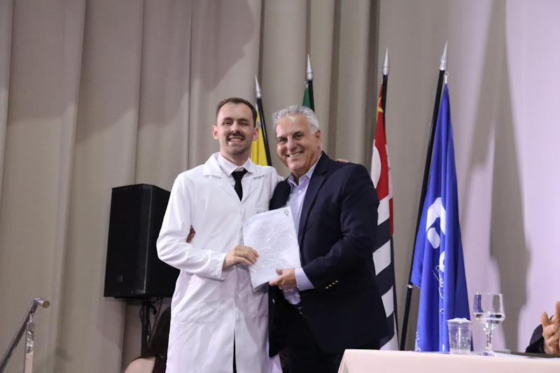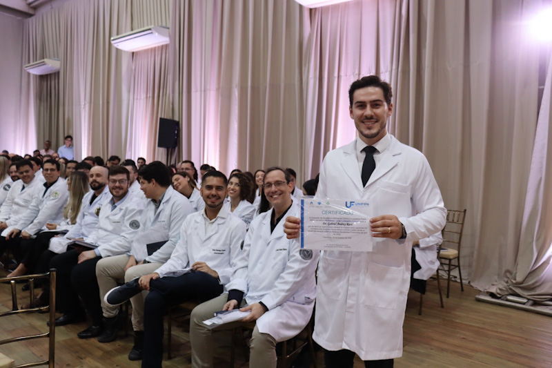 A solenidade foi aberta pela pró-reitora, Profa. Dra. Ana Paula Girol. O orador da turma foi o médico Dr. Guilherme Guimarães Coelho, do programa de Residência Médica em Clínica Médica, que destacou a formação recebida e a relevância da instituição em sua trajetória profissional. Durante a cerimônia foram entregues as declarações de conclusão aos 74 novos especialistas formados nos diferentes programas. A entrega foi realizada pelos supervisores de cada área. Na ocasião, o coordenador da COREME, Prof. Dr. Eduardo Marques da Silva, concedeu o Prêmio “Jader Labergalini Cabral” ao residente que mais recebeu elogios pela ouvidoria dos hospitais. O homenageado foi o médico Dr. Gabriel Andrey Ricci.