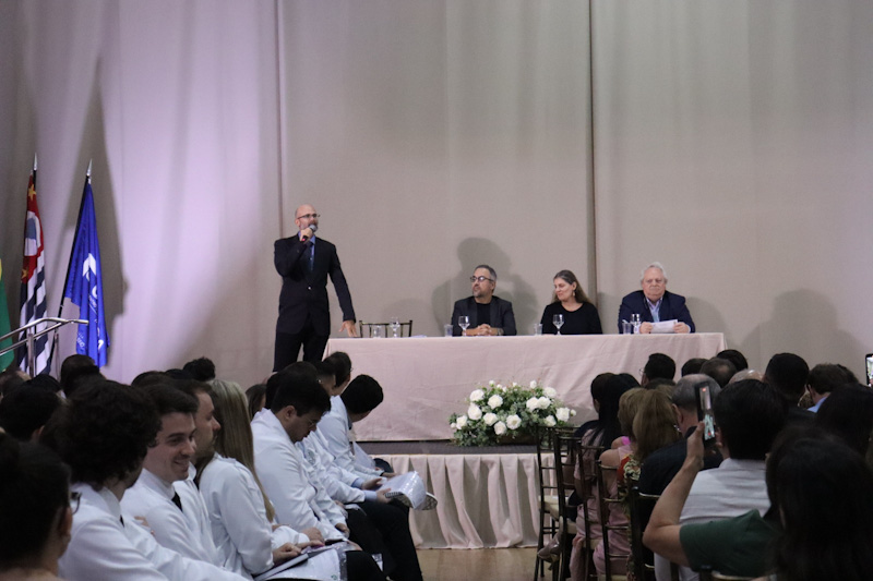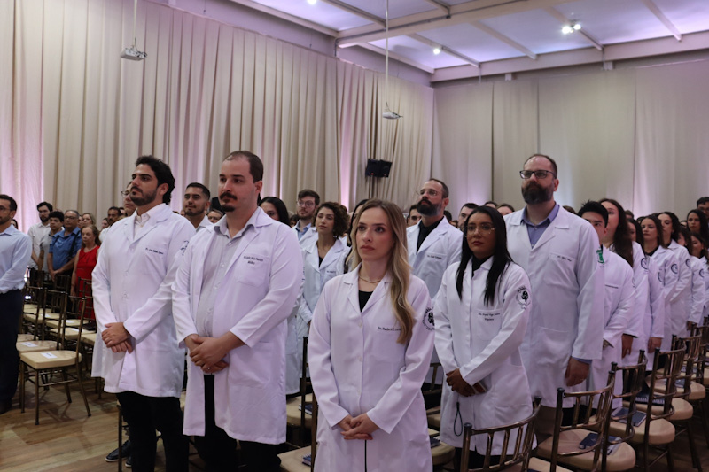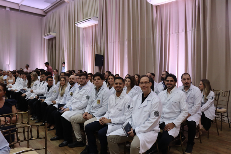 A mesa solene foi composta pelo diretor de Educação da Fundação Padre Albino, Bruno Dias; pela pró-reitora de Pesquisa e Pós-Graduação, Profa. Dra. Ana Paula Girol, representando o reitor da UNIFIPA, Dr. Nelson Jimenes; pelo coordenador da Comissão de Residência Médica (COREME), Prof. Dr. Eduardo Marques da Silva; e pelo coordenador do curso de Medicina da UNIFIPA/FAMECA, Prof. Dr. Jorge Luís dos Santos Valiatti. Participaram da cerimônia os supervisores dos programas de Anestesiologia, Cirurgia Geral, Cirurgia Plástica, Clínica Médica, Ginecologia e Obstetrícia, Medicina Intensiva, Medicina da Família e Comunidade, Ortopedia e Traumatologia, Pediatria, Psiquiatria e Radiologia e Diagnóstico por Imagem.