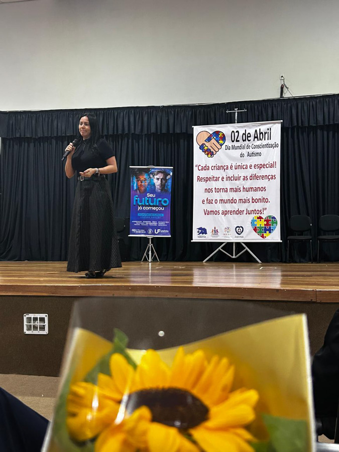 A atividade teve como palestrante a egressa do curso de Educação Física da instituição, Cristiane Aparecida da Silva do Carmo, mestre em Processos de Ensino, Gestão e Inovação. Também formada em Pedagogia, a profissional possui pós-graduação em Psicomotricidade, Psicopedagogia e Atendimento Educacional Especializado (AEE). Cristiane abordou questões fundamentais sobre o transtorno do espectro autista (TEA), esclarecendo dúvidas e oferecendo informações ao público presente.