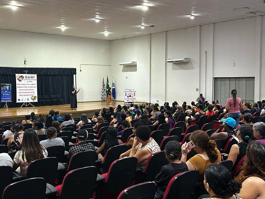 A Prefeitura de Tabapuã, por meio da Secretaria Municipal de Assistência Social, realizou nesta quarta-feira, 23 de abril, reunião especial voltada aos beneficiários do Programa Bolsa Família. O encontro aconteceu no Teatro Gigi e contou com parceria do Centro Universitário Padre Albino/UNIFIPA, que contribuiu com palestra sobre autismo, em alusão ao Dia Mundial da Conscientização do Autismo, celebrado em neste mês de abril.