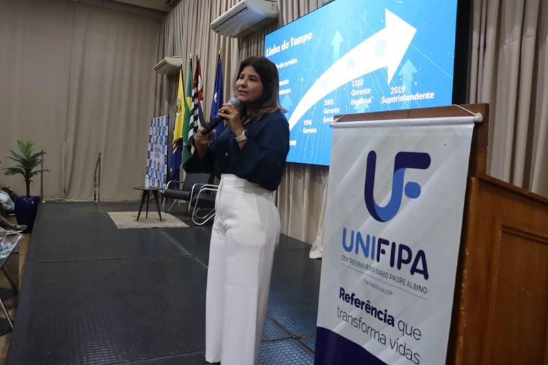 Nesta edição a convidada foi Dulce Ferreira dos Santos Silvério, superintendente de Rede da CAIXA Econômica Federal em São José do Rio Preto. Com mais de 35 anos de atuação na instituição, Dulce apresentou aspectos de sua trajetória profissional, marcada por experiências em diferentes regiões do país e pela atuação em cargos de liderança. Ela destacou que a carreira não acontece por acaso, mas é construída diariamente, e elogiou a proposta institucional da UNIFIPA, baseada nos pilares protagonismo, excelência e foco no mercado. Segundo ela, é fundamental que cada profissional tenha propósito e assuma o protagonismo de sua trajetória, conduzindo a própria carreira com objetivos claros e visão de futuro.