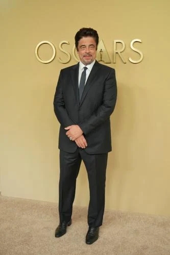 Já Benicio del Toro, que está concorrendo ao Oscar de Melhor Ator Coadjuvante,optou por um terno ZEGNA de lã azul-marinho, combinado com camisa Centoventimila branca com listras azul-claro e gravata de seda azul-marinho.