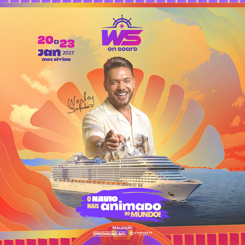 O navio mais animado do mundo está pronto para navegar novamente. Após o sucesso absoluto das últimas edições, o WS On Board retorna aos mares entre os dias 20 e 23 de janeiro de 2027, prometendo mais uma jornada marcada por música, festas e experiências inesquecíveis em alto-mar.