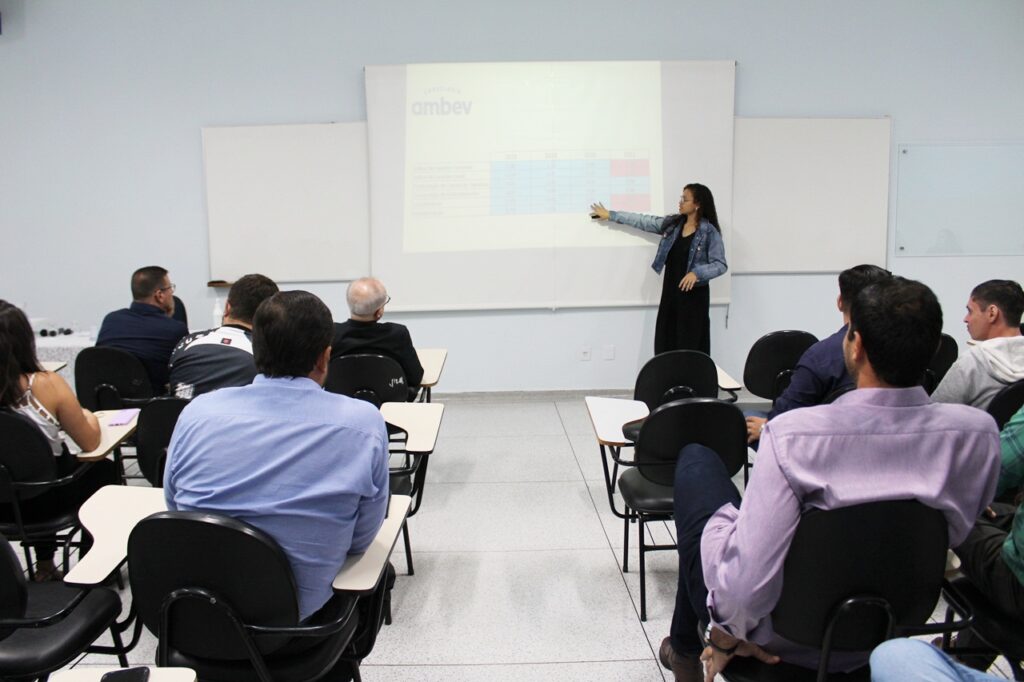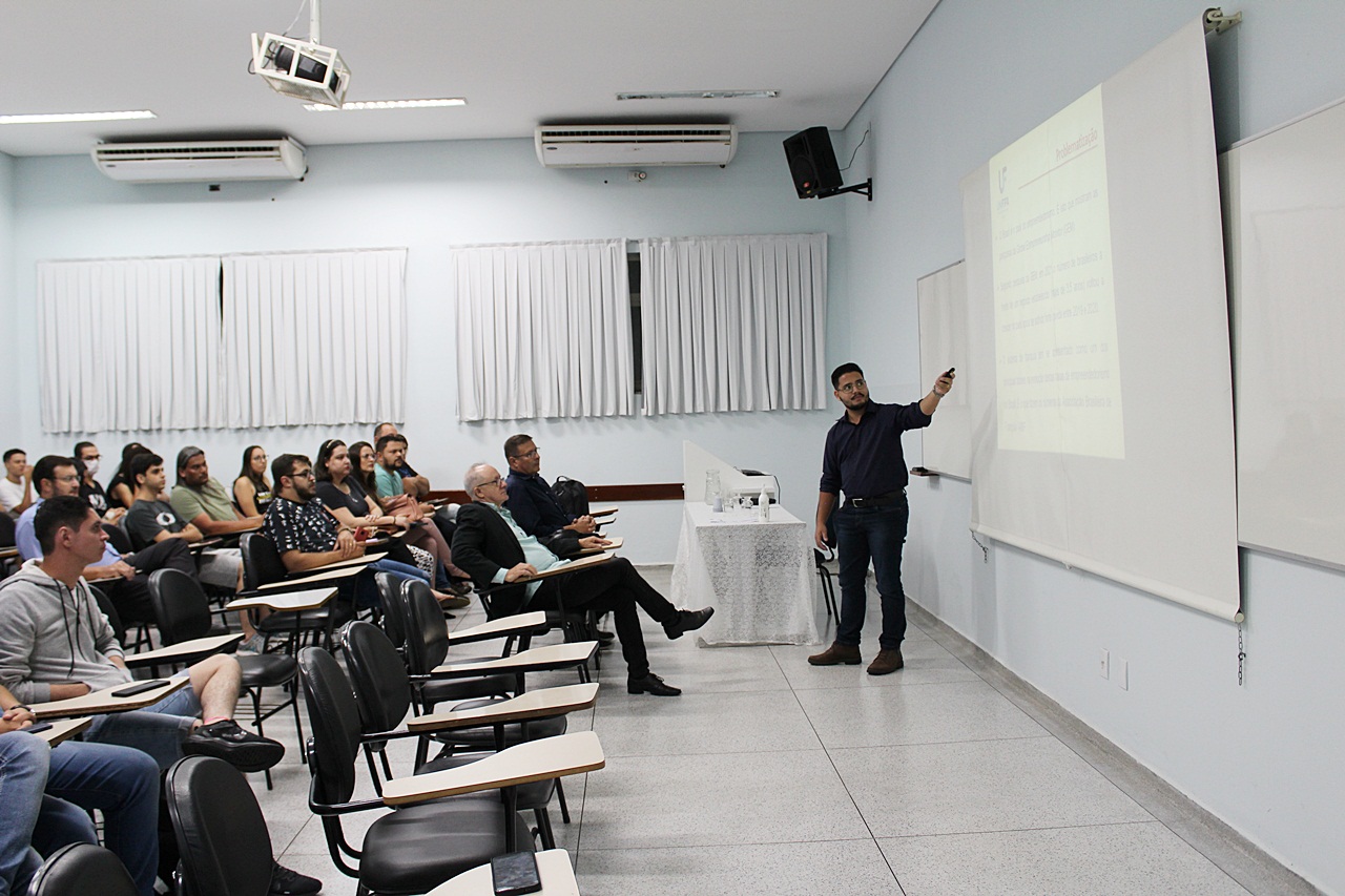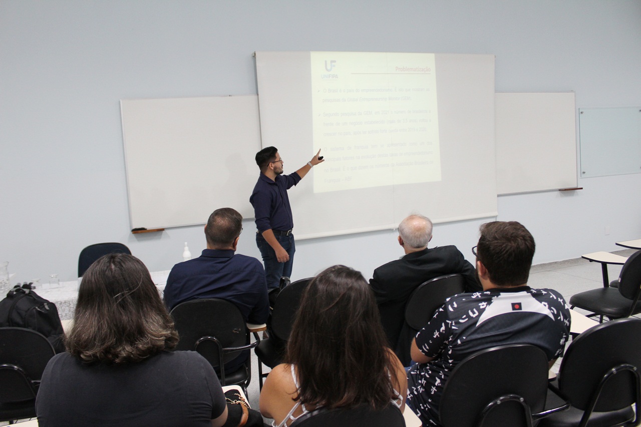 Conduzidos pelo Prof. Me. Paulo Roberto Vieira Marques, os projetos de cada grupo foram apresentados. Pela ordem de títulos o primeiro foi “Análise da evolução do sistema de franquias no Brasil”, coordenado pelo docente Prof. Me. Marcos Braz de Assis, apresentado pelo aluno Abner Vinícius de Assis. “Através das publicações sobre o assunto, dentro dos resultados, constatamos que a maioria dos potenciais empreendedores no Brasil busca uma franquia quando pensa em abrir um negócio”, apresentou o aluno.