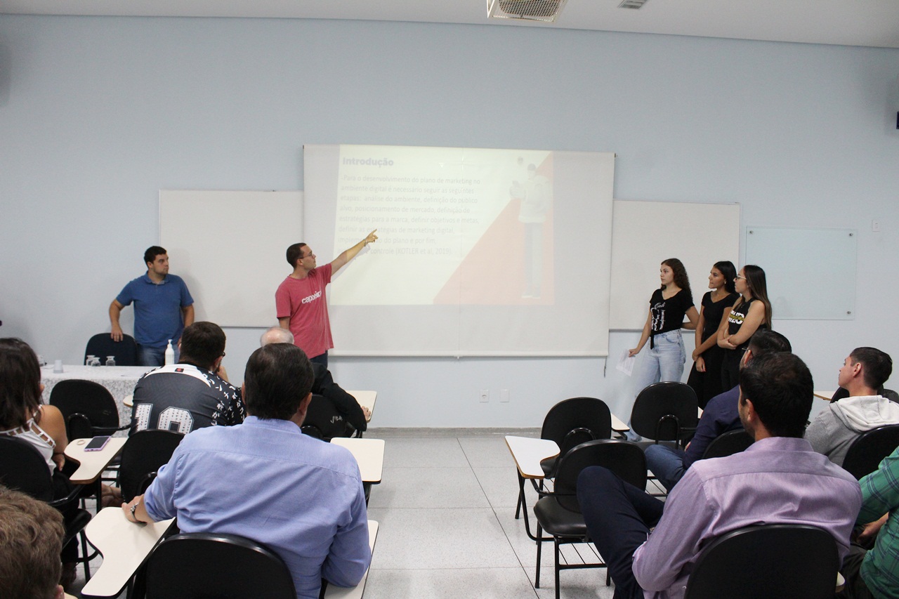 O “Planejamento de Marketing Digital para empresas do comércio varejista” foi apresentado pelos alunos Ana Beatriz Tavares, Bruno dos Santos Filho, Fernando Rodrigues de Sá, Jhenifer Pereira de Andrade e Nicole Fernandes G.C. de Matos, com orientação do Prof. Me. Cleber Peres. “O marketing digital pode alavancar consideravelmente o negócio varejista se usado corretamente. Nosso objetivo é implantar este procedimento no comércio local”, explicou o orientador.