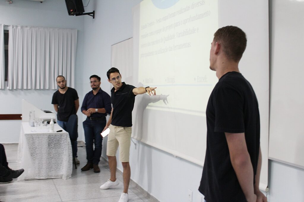 Por último, o controle de qualidade nas linhas de produção foi objeto da pesquisa “Métodos estatísticos para a Gestão da Qualidade”, dos alunos Abner Vinícius de Assis, André Barcelos Kamla, Felipe Borsio Pasiani e Gabriel Martins Cid, com orientação do prof. pesquisador. Me. Nilson Mozas Olivares e colaboração do prof. Me. Antonio Agide Mota Junior. “É muito importante que se tenha protocolos de padronização do processo de produção. Um minuto de máquina parada pode impactar seriamente uma jornada toda”, ressaltou um dos alunos.